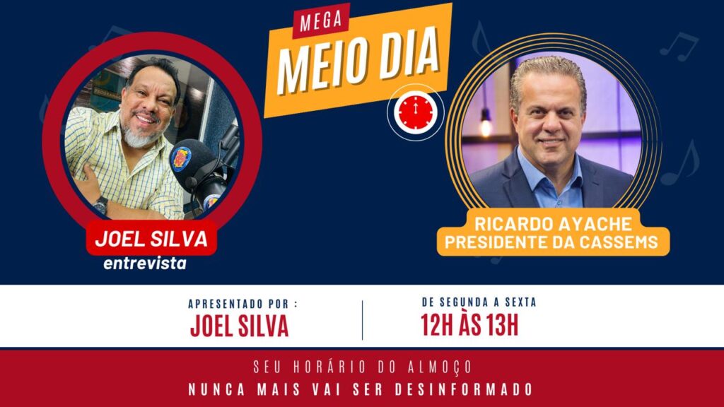 O Mega Meio Dia vai ao ar de segunda a sexta na Mega 94, pontualmente ao meio dia. A entrevista será conduzida pelos jornalistas Joel Silva e Cibele Balta e começa às 12h20min.