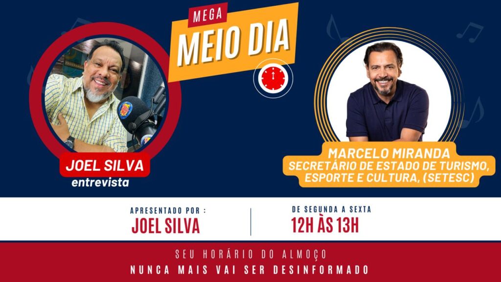 O Mega Meio Dia vai ao ar de segunda a sexta na Mega 94, pontualmente ao meio dia. A entrevista será conduzida pelos jornalistas Joel Silva e Cibele Balta e começa às 12h20min.