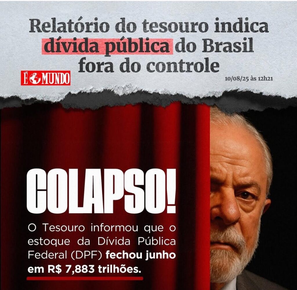 Resolvi escrever motivado por um print que anda circulando mostrando a dívida pública em R$ 7,883 trilhões. O número é verdadeiro, saiu no relatório do Tesouro Nacional de junho. Muita gente compartilhou sem contexto, e aí vale trazer uma linha do tempo pra clarear.