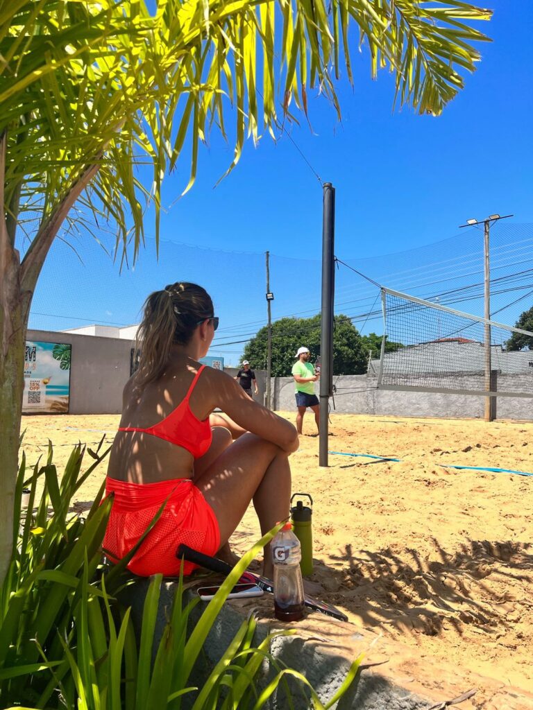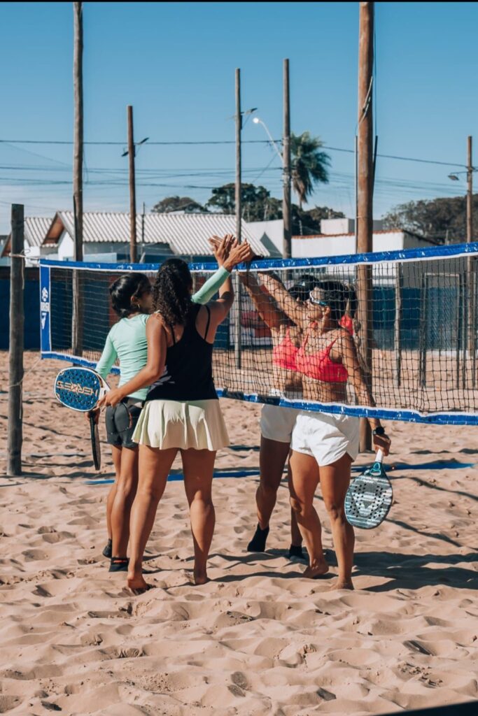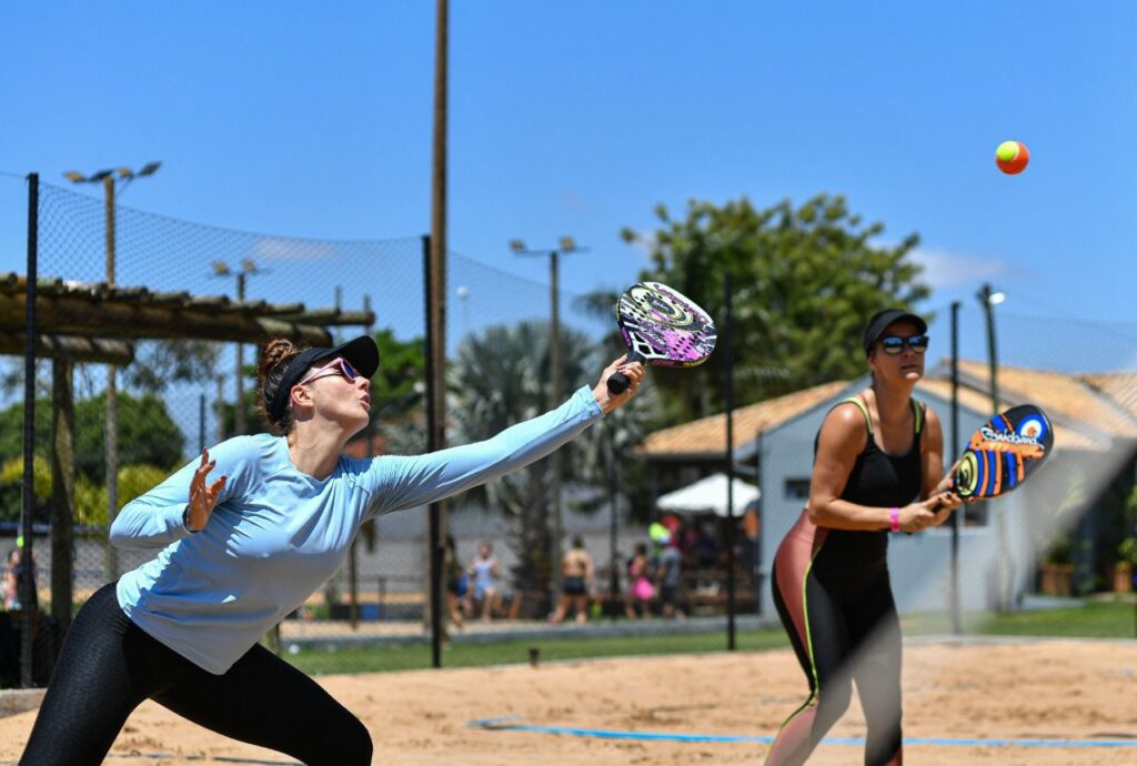• Beach tênis – modalidade disputada em quadra de areia, que combina elementos do tênis e vôlei de praia, trazendo descontração, condicionamento físico e socialização.