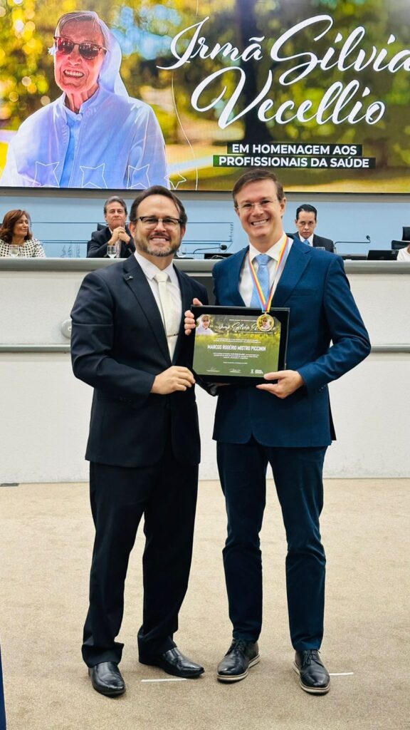O Dr. Marcos Rogério Mistro Piccinin, coordenador do Serviço de Oftalmologia do Hospital São Julião há 25 anos, foi um dos agraciados. Além de sua longa e respeitada atuação na instituição, o médico também é supervisor e professor do Curso de Especialização em Oftalmologia, contribuindo para a formação de especialistas que seguem seu exemplo de ética e dedicação.